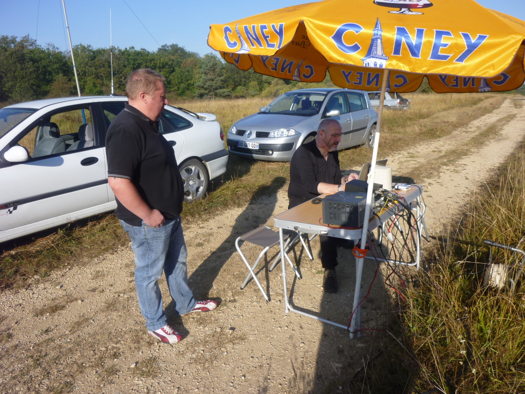 La température était de saison, un beau ciel bleu avec une petite rosée cette fois pas besoin de la remorque de F0GCV, les stations étaient en pleine nature et comme le montre les photos vers 10h00 du matin le soleil s’est fait sentir, il a fallu sortir les Parasols.